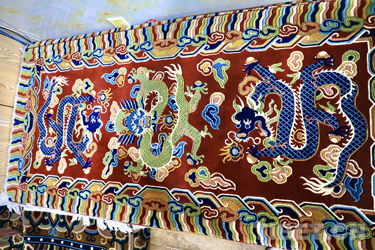 中國(guó)西藏網(wǎng)訊 中國(guó)西藏信息中心“新春走基層”青藏線采訪組一行,從青海西寧起一路上看到諸多織著一幅幅精美龍圖案的藏毯。眾所周知,龍自古以來就是中華民族的象征,繪有“龍圖案”或“龍?jiān)亍钡奈锛?大到廣泛存在于中國(guó)人的衣食住行,小到言談舉止、待人接物等方方面面。對(duì)于世代生活在青藏高原上的人們來說,對(duì)龍圖騰的崇拜早已與當(dāng)?shù)氐纳a(chǎn)和生活緊密相連。