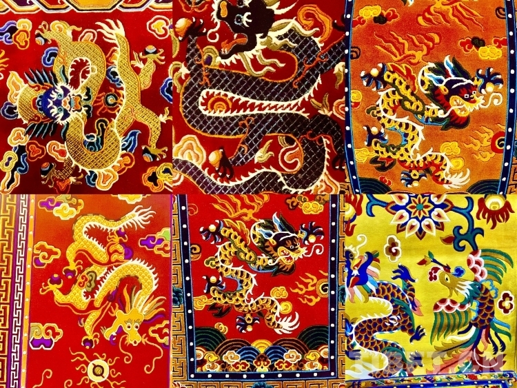 龍作為美好、向上、富貴、勇猛的象征,可以說龍文化滲透在我們生活中的各個(gè)角落。藏毯上的這些龍圖案也不例外,它不光是追求審美上的好看,更是有一種敬畏和美好的寓意。