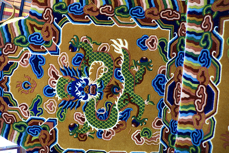 圖為藏毯上的盤龍和雙龍戲珠 攝影:龍真多吉
