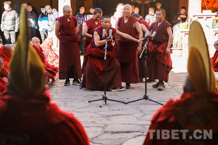 圖為西藏自治區(qū) 2024年度藏傳佛教學(xué)經(jīng)僧人考核晉升格西拉讓巴學(xué)位立宗答辯暨頒證儀式現(xiàn)場 攝影:賈華加