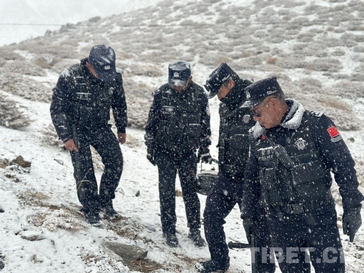 圖為斜爾瓦執(zhí)勤點民警冒著風(fēng)雪開展巡邏踏查 攝影:格熱