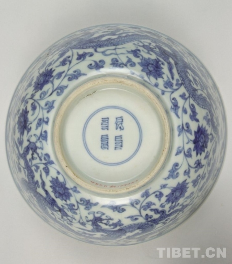 圖為青花穿花龍紋碗底部 圖片來源:故宮博物院