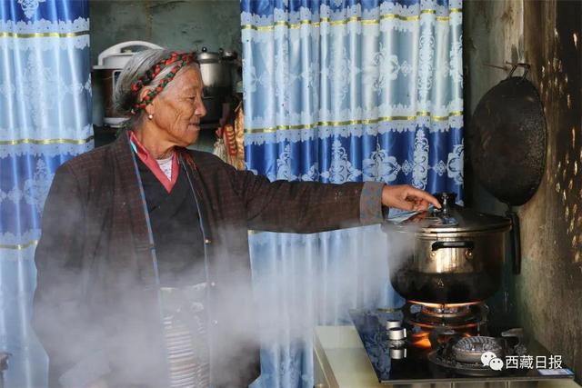 圖為山南市貢嘎縣杰德秀鎮(zhèn)果吉村村民在使用新式高壓鍋時,單手撥動鍋蓋上的泄壓閥排放鍋里的氣體。圖片來源于西藏日報