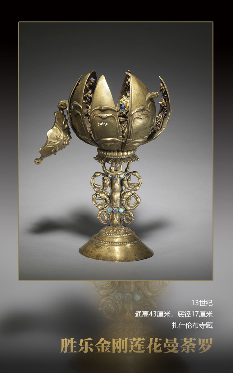 類似作品保存實(shí)例頗多,且多以無(wú)上瑜伽部本尊曼荼羅為主題。這種樣式的曼荼羅原型很可能來(lái)自印度波羅時(shí)期的作品。不過(guò)此尊造像做工質(zhì)樸,裝飾簡(jiǎn)略,應(yīng)是西藏工匠早期模仿波羅風(fēng)格的作品。(文圖資料來(lái)源:澳門(mén)藝術(shù)博物館 中國(guó)西藏網(wǎng) 記者/易文文 趙佳 呂靜 王東 姚浩然)