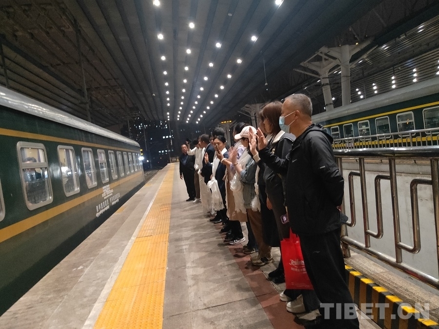 中國(guó)西藏網(wǎng)訊 4月27日晚,西藏野生動(dòng)物保護(hù)員進(jìn)京考察學(xué)習(xí)活動(dòng)圓滿結(jié)束,學(xué)員們?cè)诒本┪髡镜巧翔F路Z21次列車,開(kāi)啟返回家鄉(xiāng)的路程。北京建藏援藏工作者協(xié)會(huì)、中國(guó)鐵道旅行社集團(tuán)有限公司、中國(guó)西藏網(wǎng)、中華網(wǎng)等參與此次學(xué)習(xí)考察活動(dòng)的組織單位到北京西站送別。