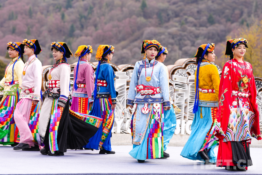 圖為“世界的阿壩”2024年系列網(wǎng)絡(luò)宣傳活動(dòng)啟動(dòng)儀式上嘉絨藏族服飾展示 攝影:趙振宇