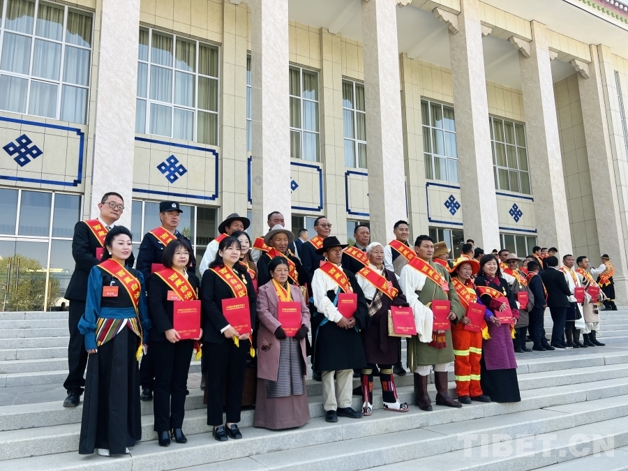 圖為表彰大會結(jié)束后獲獎者們合影留念 攝影:德吉卓瑪