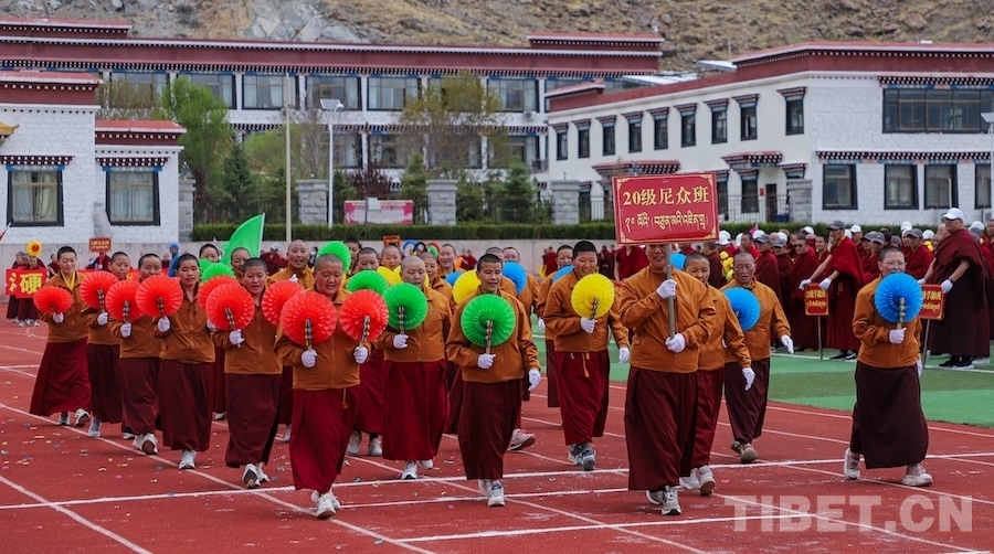 中國西藏網(wǎng)訊 5月8日,西藏佛學(xué)院第六屆運(yùn)動(dòng)會(huì)在拉薩舉行。學(xué)員們踴躍報(bào)名參與,開展養(yǎng)生操、打坐瑜伽、廣播體操等展示和表演。