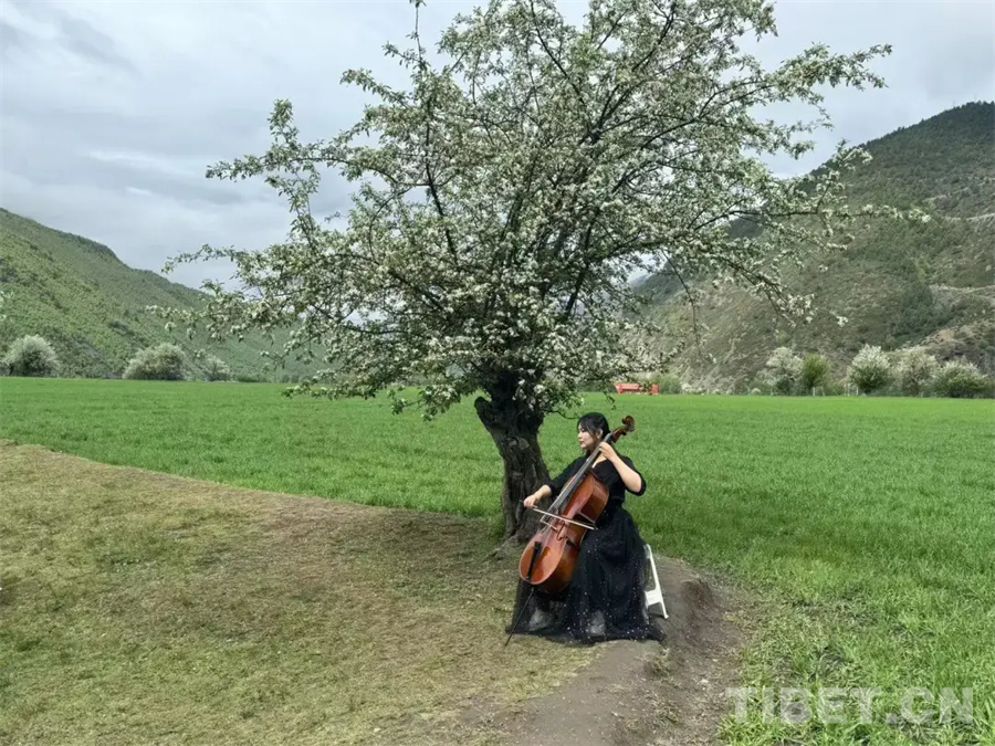 悠揚(yáng)的樂(lè)聲自林間傳來(lái),沿著步道往深處走去,一場(chǎng)特別的演奏會(huì)正在進(jìn)行。枝頭海棠盛放,樹(shù)下游人如織,鋼琴、大提琴、笛子等各色樂(lè)器奏出的曲調(diào)在貢嘎海棠的映襯下更顯別樣風(fēng)味,來(lái)自西安的韓先生細(xì)細(xì)聆聽(tīng)木雅傳統(tǒng)非遺口弦的演奏后不禁感嘆道,“太美了!這個(gè)活動(dòng)將音樂(lè)與貢嘎海棠花海巧妙融合,讓我感受到一種別樣的人與自然共生的和諧。”