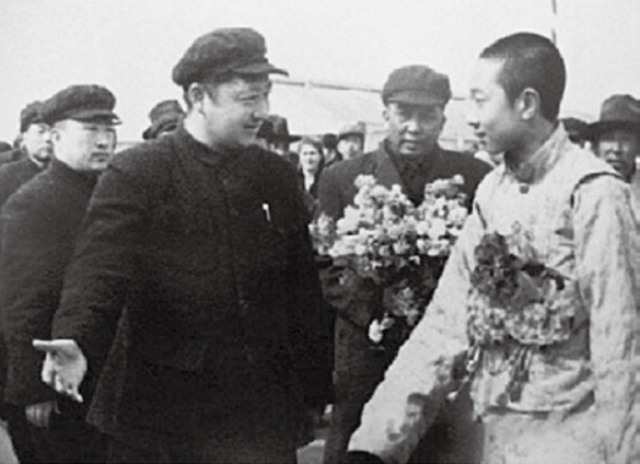 同年四月下旬,班禪從宏覺寺起程,赴京參加和平解放西藏的協(xié)議的簽訂。路過西安時,習仲勛親自到機場迎接班禪一行。這是班禪第一次會見習仲勛同志。他走下迎機艙時,習仲勛迎上來和班禪緊緊握手。這是他們神交已久的握手,彼此都留下了深刻的記憶。時隔多年后,班禪還給他的經(jīng)師和摯友嘉雅活佛說:“之前,我已和多少人握過手了。但習主任握著我的手時,我心中有一種全新的感悟,好像有一股溫暖的暖流在心中流過,這就是佛說的緣分福報。”習仲勛同志回憶他同班禪初次見面時的情形寫道:“一個活脫脫的英俊藏族少年活佛形象出現(xiàn)在我的眼前……有志不在年高,他的愛國熱情和坦誠豪爽給我留下深刻的印象?!边@次見面是習仲勛和班禪四十載革命友誼的新起點。4月27日,班禪及堪廳僧俗官員一行45人抵達北京。周總理、朱德副主席等中央領(lǐng)導前往火車站迎接班禪?!拔逡弧眹H勞動節(jié),毛主席在天安門城樓上親切接見班禪和阿沛,并作了長時間的談話,意義重大。