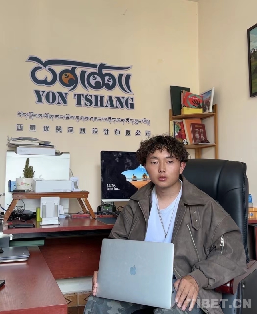 次仁頓珠是學(xué)院2022年平面設(shè)計(jì)專業(yè)的畢業(yè)生,也是全國第一屆職業(yè)技能大賽“西部技能之星”獲得者,我們到訪時他剛好回校做單元展。次仁頓珠畢業(yè)后和四個合伙人一起在拉薩創(chuàng)業(yè),創(chuàng)辦了優(yōu)贊品牌設(shè)計(jì)有限公司,主要業(yè)務(wù)包括產(chǎn)品包裝設(shè)計(jì)、logo設(shè)計(jì)和品牌設(shè)計(jì)。創(chuàng)業(yè)伊始全靠幾個合伙人自己出去推銷,如今經(jīng)過老客戶口口相傳,很多客戶主動來找他們,生意越來越好。“創(chuàng)業(yè)兩年多,我大概分紅了40多萬,今年我們幾個合伙人都買了車。未來我們計(jì)劃擴(kuò)大公司的店面,好好裝修,然后開始線上直播,以后在拉薩買了房子從昌都接?jì)寢屢黄饋碜 !贝稳暑D珠向我們介紹,笑容中帶著羞澀與驕傲。