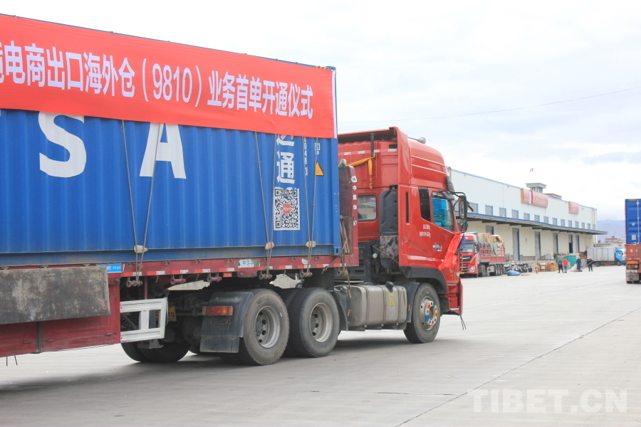 圖為中國(拉薩)跨境電子商務綜合試驗區(qū)跨境電商出口海外倉(9810)業(yè)務首單貨車向位于尼泊爾加德滿都市的海外倉發(fā)車 攝影:張曉琪