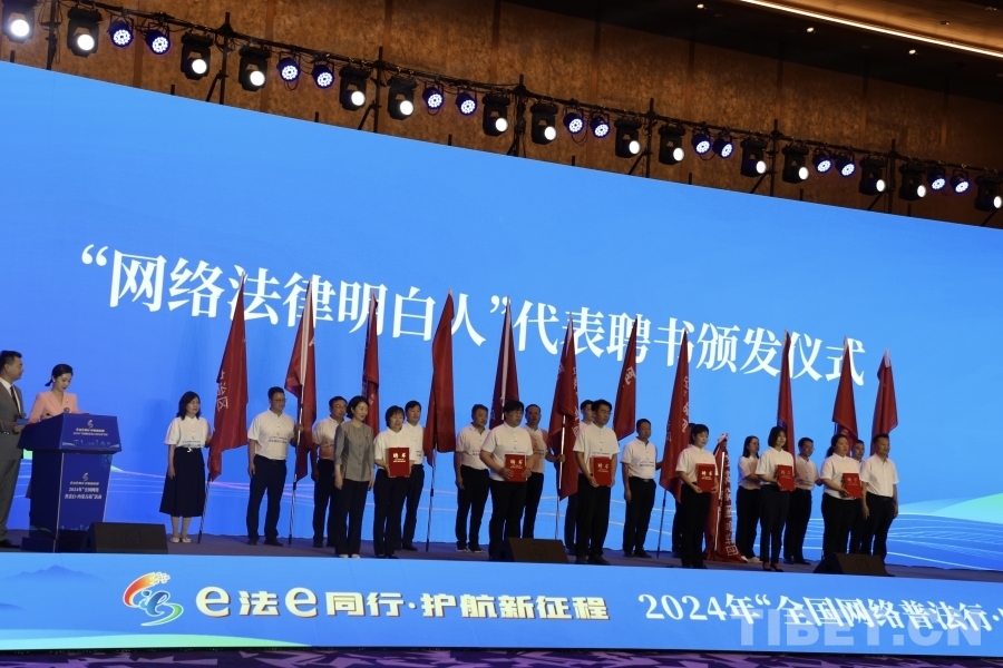 圖為向“網(wǎng)絡(luò)法律明白人”代表頒發(fā)聘書 攝影:龍真多吉
