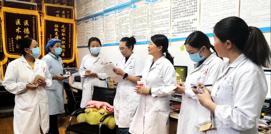 圖為航空總醫(yī)院婦科主任余立群(右三)為甘孜縣人民醫(yī)院婦產(chǎn)科醫(yī)生們召開術(shù)后總結(jié)會 攝影:劉莉