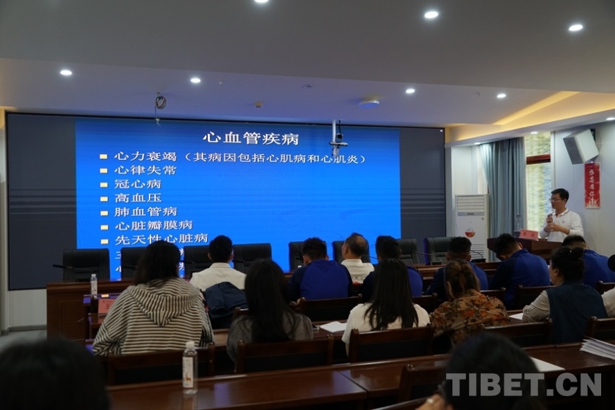 圖為專家團(tuán)執(zhí)行團(tuán)長、清華大學(xué)第一附屬醫(yī)院副院長胡暢作“同心·共鑄中國心”甘孜行白玉縣義診工作總結(jié)報告 攝影:周晴晴