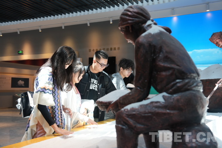“茶卡”是藏語,意即鹽池。鹽是我們生活中最為常見之物,但直到來到茶卡鹽湖文化館,這些青少年們才發(fā)現(xiàn)自己所知有限。他們這才了解到,鹽這一日常餐桌上的尋常之物,其背后竟藏著一個多彩而豐富的世界。除我們熟悉的海鹽、湖鹽之外,巖鹽的堅硬、井鹽的深邃、竹鹽的清新,都以各異的姿態(tài)和色彩展現(xiàn)著自然界的奇妙多樣性。鹽的妙用也遠不止調(diào)味,還有清潔、消腫等多種功效。何莉莉聯(lián)想到自己生物課上所學:“鹽里含有的多種氨基酸和微量元素,都是我們身體所需,對人類真的很重要。”