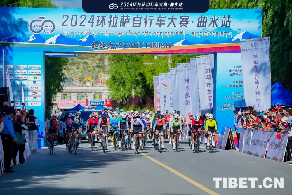 圖為2024環(huán)拉薩自行車大賽·曲水站比賽開賽