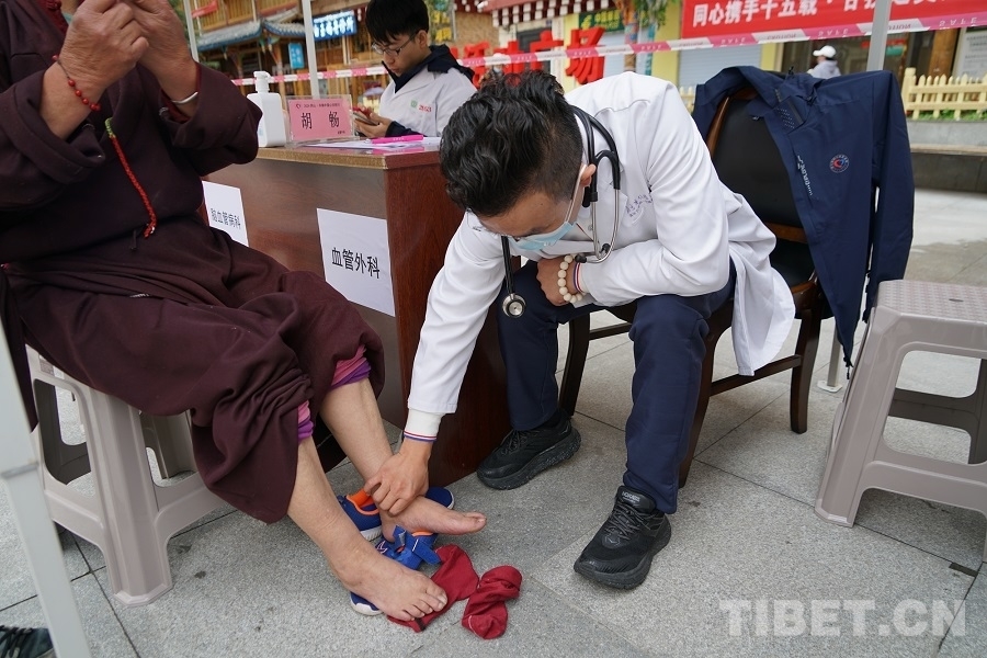 7月6日傍晚,歷經(jīng)一整天的奔波后,胡暢所在的“同心·共鑄中國(guó)心”甘孜行白玉縣醫(yī)療專家團(tuán)抵達(dá)白玉縣城。在接下來七天的幫扶活動(dòng)中,胡暢先后在白玉縣新時(shí)代文明實(shí)踐廣場(chǎng)、縣人民醫(yī)院、昌臺(tái)片區(qū)阿察鎮(zhèn)、河坡鄉(xiāng)中心小學(xué)等地義診,并在縣人民醫(yī)院為到場(chǎng)的當(dāng)?shù)蒯t(yī)護(hù)人員和消防隊(duì)員開展了一場(chǎng)以血管外科為主題的健康科普講座。活動(dòng)期間,一聲聲道謝,一條條哈達(dá),一張張笑臉,道不盡的是患者們的感激,凝結(jié)的是胡暢與甘孜白玉再也割舍不斷的情感聯(lián)結(jié)。“在街頭和群眾相遇,他們知道我們是北京過來的義診醫(yī)生,很歡迎我們,會(huì)微笑著和我們打招呼,讓人覺得很溫暖?!?nbsp;