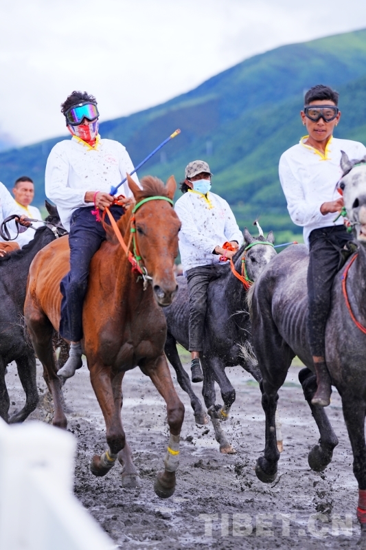 賽馬場上,開賽鈴響后,騎手們駕馭著馬匹如離弦之箭沖出起點(diǎn),伴隨著騎手的吆喝聲,策馬揚(yáng)鞭,駿馬奔騰,你追我趕,賽道塵土飛揚(yáng),馬背上的速度與激情精彩上演。賽馬場外,大象拔河、朵加(抱石頭)、客有曲通(馬鞍倒立)等民俗活動(dòng)你方唱罷我登場,吶喊聲、助威聲此起彼伏。