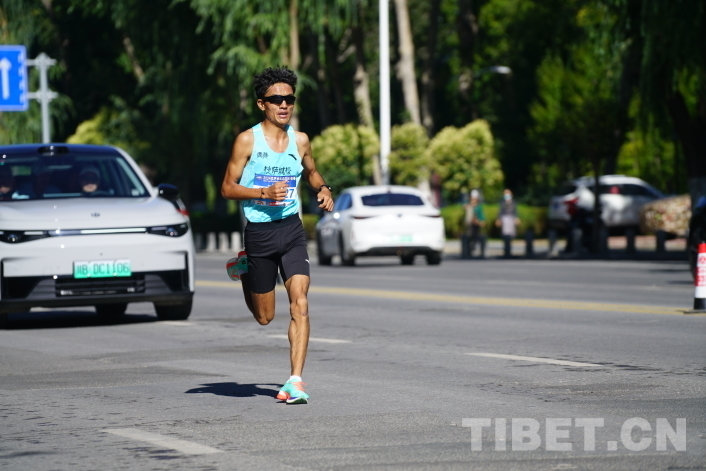 圖為2024拉薩半程馬拉松男子組第一名頓珠次仁 攝影:趙振宇