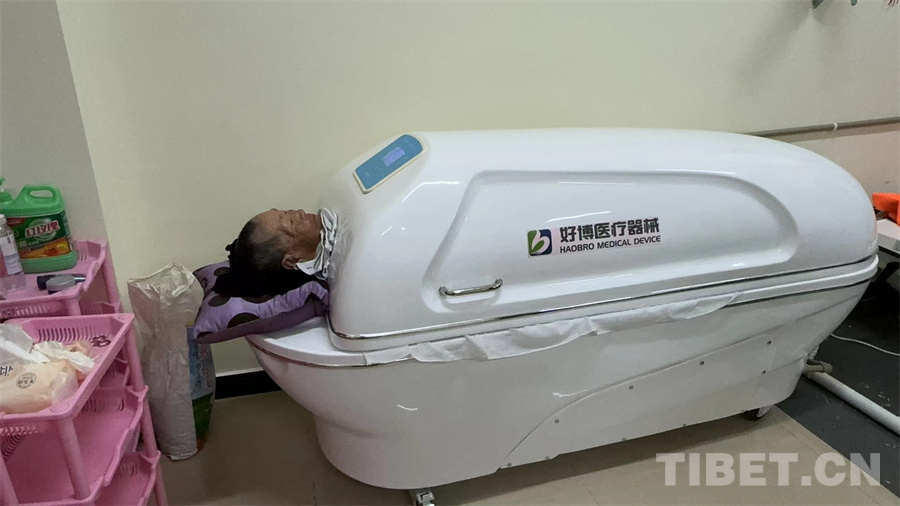 圖為當?shù)乩先苏谙硎懿厮幯魴C的醫(yī)療護理