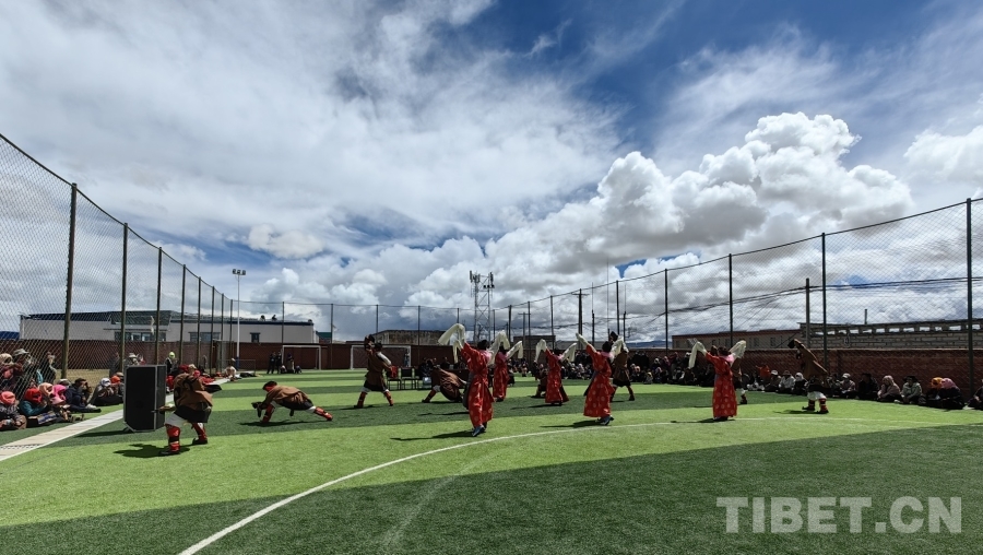 中國西藏網(wǎng)訊 9月5日,西藏自治區(qū)那曲市班戈縣文化和旅游局納木錯(cuò)民間藝術(shù)團(tuán)在班戈縣北拉鎮(zhèn),以“我們的中國夢 文化進(jìn)萬家”為主題,為廣大群眾送上一場充滿濃厚傳統(tǒng)文化,注滿深情厚誼的文藝惠民演出。