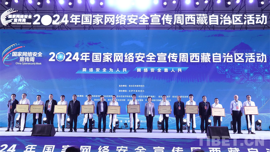 圖為西藏自治區(qū)黨委網(wǎng)信辦聯(lián)合國家計算機(jī)網(wǎng)絡(luò)與信息安全管理中心西藏分中心向西藏自治區(qū)網(wǎng)絡(luò)與數(shù)據(jù)安全技術(shù)支撐單位授牌 攝影:德吉卓瑪