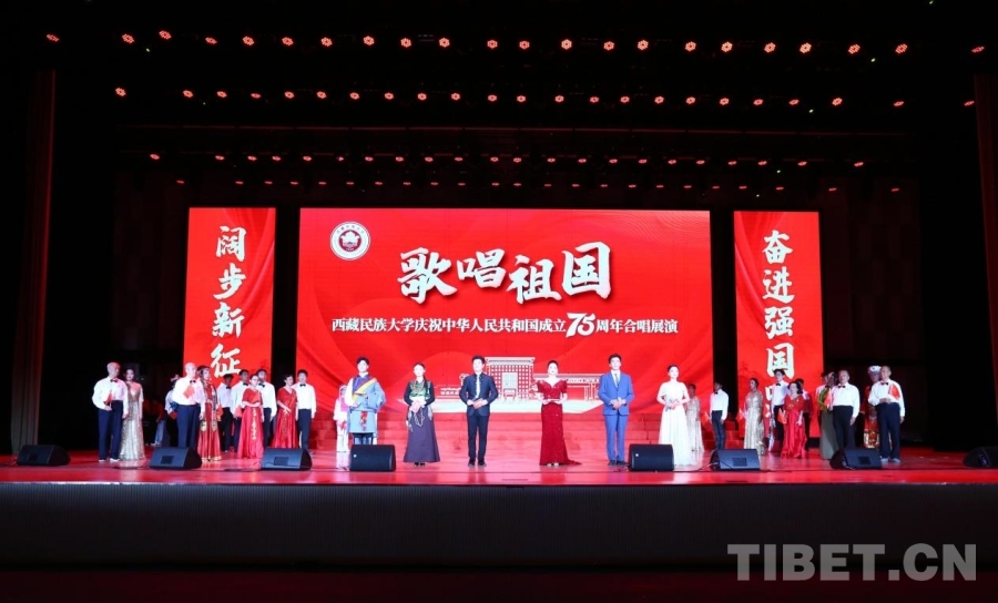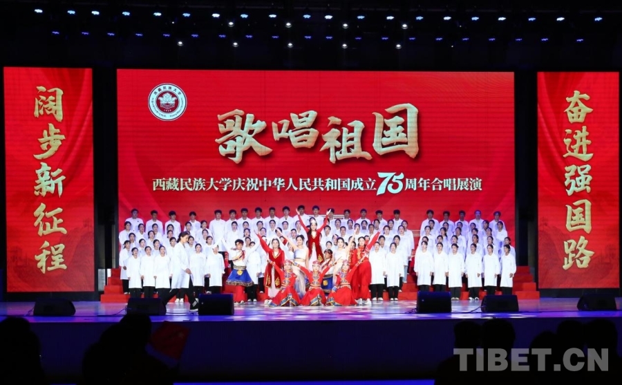 中國西藏網(wǎng)訊 紅旗獵獵,歌聲嘹亮。在喜迎中華人民共和國成立75周年之際,9月28日,一場以“歌唱祖國”為主題的合唱展演在西藏民族大學(xué)文體館舉行。
