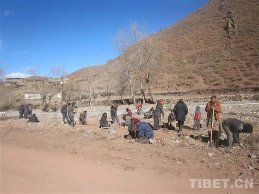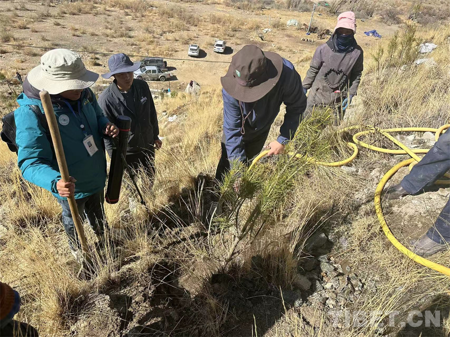 丁玉珂駐村時與當(dāng)?shù)剞r(nóng)牧民開展造林的場景 受訪者供圖
