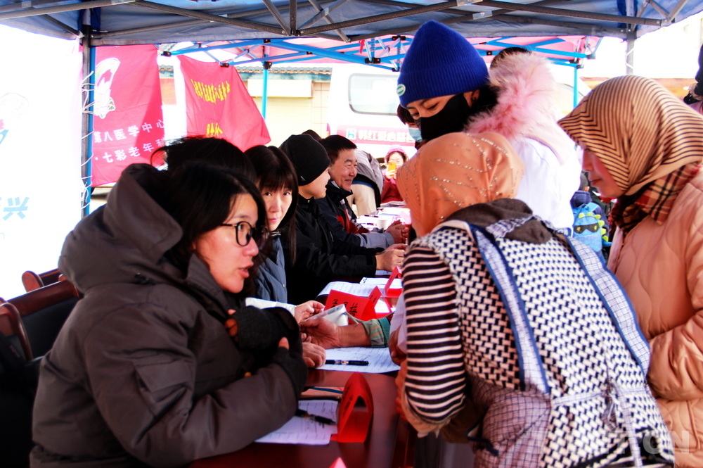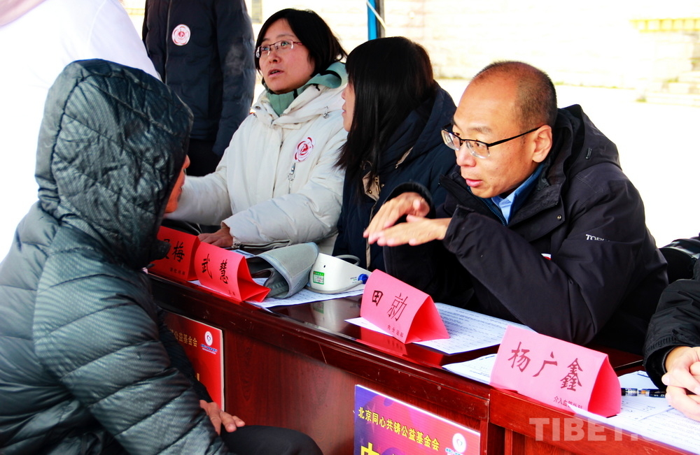 高原的大雪天,在室外即便來回走動(dòng)也感覺格外寒冷。前來問診的患者絡(luò)繹不絕,醫(yī)務(wù)志愿者們堅(jiān)守崗位,身披雪花,腳踩積雪,在翻譯的幫助下不停接診,一坐就是大半天。有的醫(yī)務(wù)志愿者專心接診,渾然不知衣服上已經(jīng)積雪;有的醫(yī)務(wù)志愿者發(fā)現(xiàn)患者不太理解疾病的分科,就同時(shí)擔(dān)起了分診工作;有的醫(yī)務(wù)志愿者自身高反強(qiáng)烈,吸著氧也要堅(jiān)持接診……