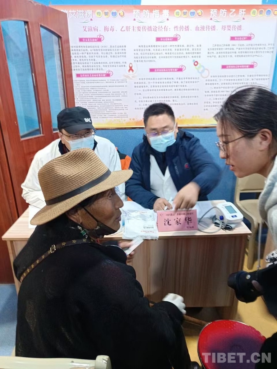 圖為中國(guó)康復(fù)研究中心骨科專家唐鵬為當(dāng)?shù)厝罕娍丛\ 攝影:賈春玲