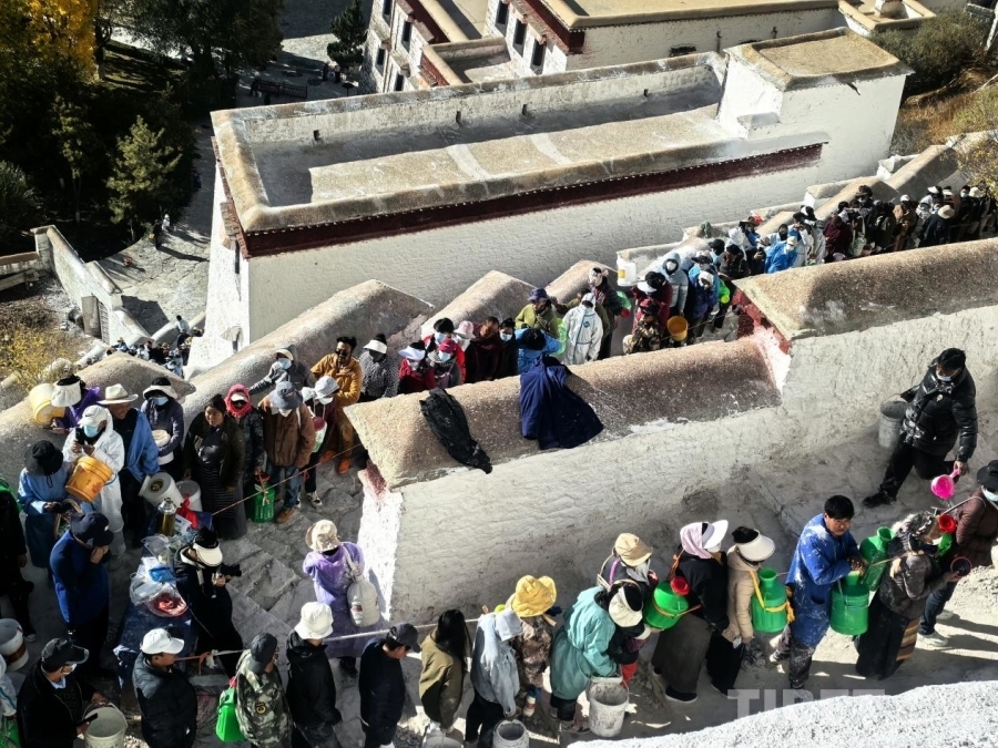 圖為群眾在布達(dá)拉宮刷墻現(xiàn)場(chǎng)排起長(zhǎng)隊(duì) 攝影:王淑