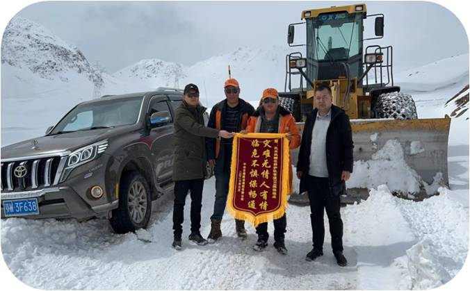 隨著川配項目的進駐,我們負責(zé)管養(yǎng)的S303線,過往車輛70%為川配項目物資運輸車輛。2023年3月1日,中冶交通建設(shè)集團有限公司翻越果扎拉山,將一面寫著“災(zāi)難無情人有情,臨危不懼保暢通”的錦旗送到了我們4名保通員手中。他們說,每每經(jīng)過果扎拉山,白茫茫一片公路,其中閃現(xiàn)著橘色的身影,既讓他們心安,又讓他們心疼,更讓他們佩服。來西藏前,他們只是聽說過“兩路”精神、老西藏精神,進入施工后,才懂得那橘色的身影就是“兩路”精神的化身。