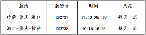 圖為拉薩?重慶?海口航線時間表,具體以航班飛行實際時間為準(zhǔn)