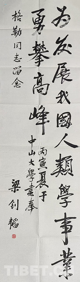 這次我給中大捐贈(zèng)了珍藏已久的梁先生為我題寫的畢業(yè)贈(zèng)言。他要我為發(fā)展我國(guó)人類學(xué)事業(yè)勇攀高峰,我知道以我的能力和年齡,今生不一定能攀登高峰,但我依然在努力,依然在奮斗。近二十多年來(lái),我在一些大專院校兼任博士生導(dǎo)師,為培養(yǎng)中國(guó)馬克思主義藏學(xué)家和人類學(xué)家而辛勤耕耘,尤其是2011年從行政崗位退下來(lái)以后,我已經(jīng)全身心地投入到培養(yǎng)中國(guó)藏學(xué)和人類學(xué)接班人的教學(xué)工作中,不辜負(fù)梁釗韜導(dǎo)師的贈(zèng)言和中大領(lǐng)導(dǎo)以及人類學(xué)老師們期望,為中國(guó)藏學(xué)和人類學(xué)的發(fā)展發(fā)揮余熱,我樂(lè)此不疲。至少我要對(duì)得起榮獲的兩個(gè)“第一”的光環(huán)吧。(中國(guó)西藏網(wǎng) 文/格勒 圖片均為作者提供)