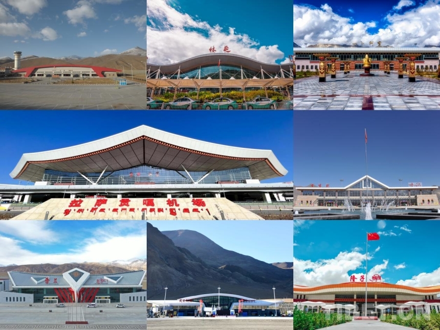 圖為西藏已建成投用的機(jī)場(chǎng)(拼版圖片)