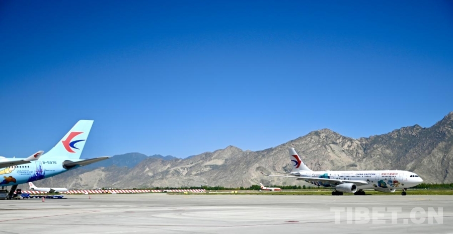 圖為拉薩貢嘎國(guó)際機(jī)場(chǎng)停機(jī)坪