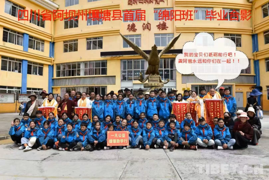 同年,為彌補孩子的英語短板,龔仙彥申請讓長期擔(dān)任高中教學(xué)工作的妻子也到壤塘一起帶“綿陽班”,這也是他期待已久的事情:“能夠和妻子照顧孩子們的生活、輔導(dǎo)孩子們的薄弱學(xué)科,很幸福!”首屆“綿陽班”畢業(yè)后,龔仙彥和身邊的愛心朋友還組建了一支“情牽壤巴拉”愛心團(tuán)隊,來鼓勵壤塘的孩子們繼續(xù)學(xué)習(xí),他說:“我們將一直陪著孩子們長大、成人、成才!”。