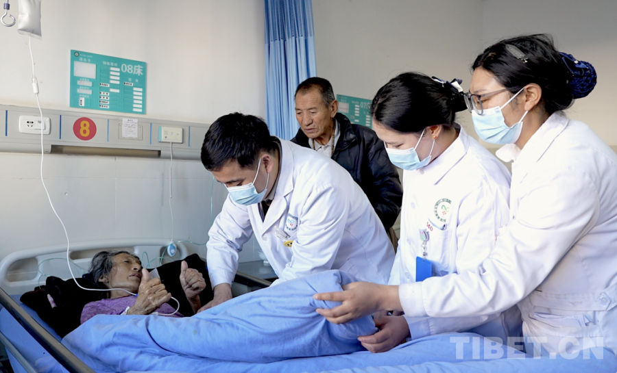 12月1日,若爾蓋縣人民醫(yī)院內,值班外科醫(yī)生仁青奪機正為一名患有膽囊結石的住院病人進行常規(guī)病情摸查。談及就醫(yī)現(xiàn)狀,病人家屬澤讓甲很是感激:“很感謝這里的醫(yī)生,他們醫(yī)術很好,也很積極地進行治療,而且現(xiàn)在我們也不用長途跋涉地去看病了,很方便?!?nbsp;