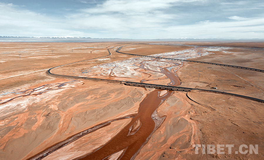 圖為青藏公路和青藏鐵路并行于格爾木 攝影:滕洪亮