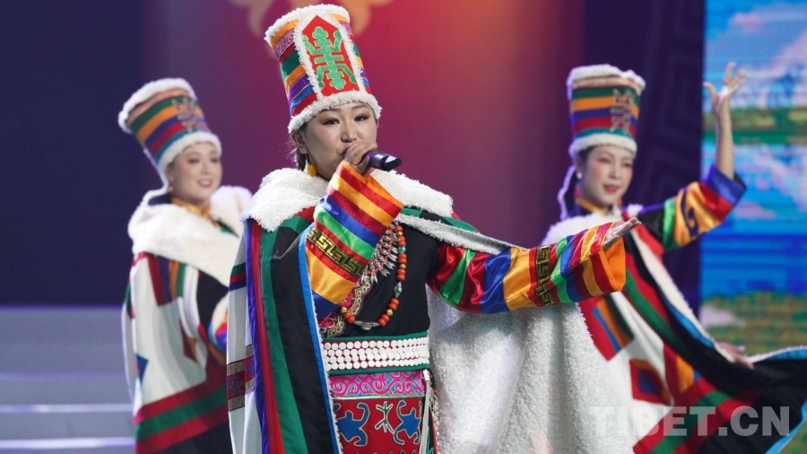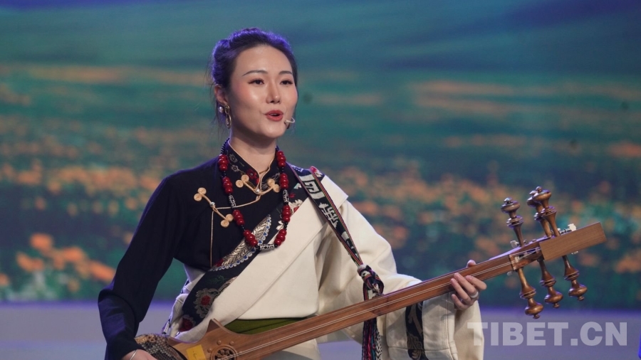 圖為歌手澤旺拉姆演唱歌曲《清晨的祝?!?/p>