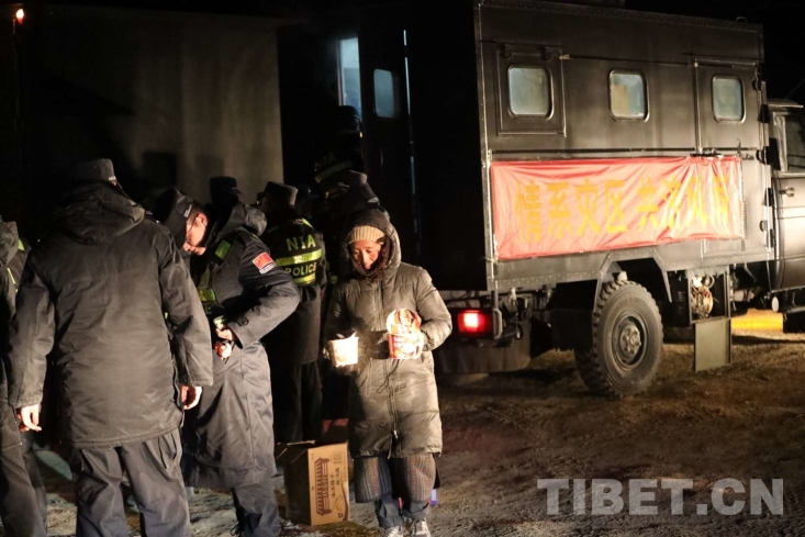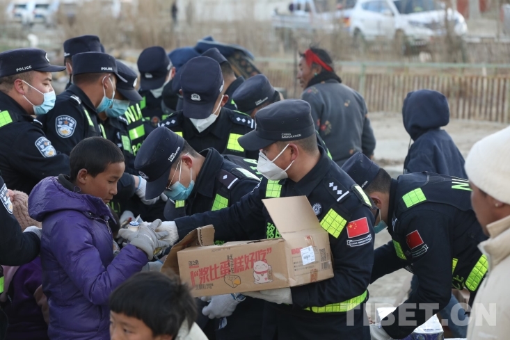 中國(guó)西藏網(wǎng)訊 1月7日9時(shí)5分,在西藏日喀則市定日縣措果鄉(xiāng)附近發(fā)生6.8級(jí)地震,震源深度10千米。西藏出入境邊防檢查總站移民管理警察在定日縣長(zhǎng)所鄉(xiāng)雜村參與救援及安置工作。地震災(zāi)區(qū)第一夜,移民管理警察為當(dāng)?shù)厥転?zāi)群眾搭建防寒帳篷、發(fā)放各類(lèi)物資,保證受災(zāi)群眾有屋住,有飯吃。(中國(guó)西藏網(wǎng) 通訊員/郭遠(yuǎn)敬)