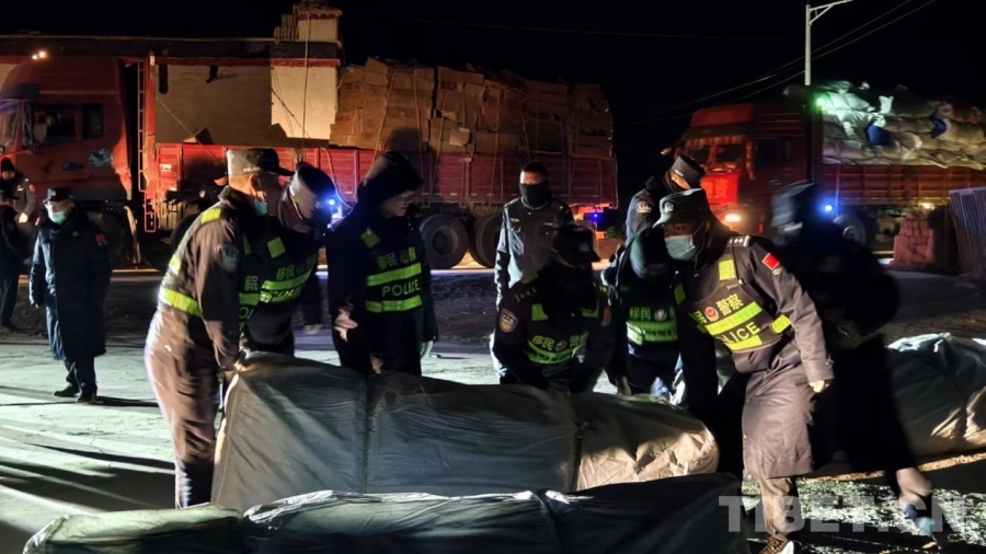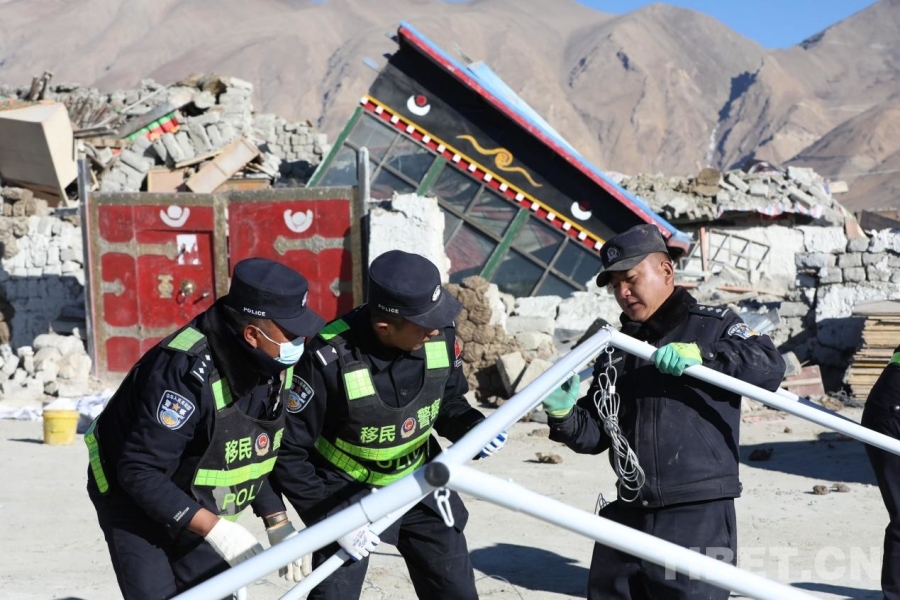 定日縣長(zhǎng)所鄉(xiāng)雜村是此次地震受災(zāi)最嚴(yán)重的區(qū)域之一,為了保證寒冷的天氣下群眾有避風(fēng)休息處所,1月7日20時(shí),參與救援的日喀則邊境管理支隊(duì)增援民警,等救災(zāi)物資抵達(dá)后迅速展開(kāi)帳篷搭建工作。