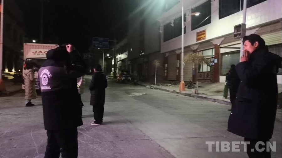 圖為1月13日晚21:14西藏自治區(qū)日喀則市定結(jié)縣縣城街頭避險的人們 攝影:劉莉