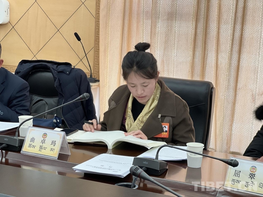 圖為西藏自治區(qū)政協(xié)委員曲卓瑪發(fā)言。攝影:德吉卓瑪