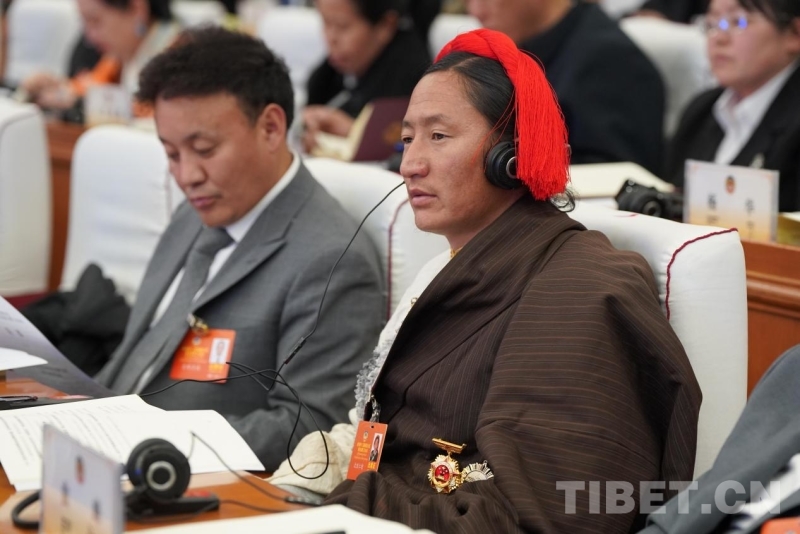 圖為西藏自治區(qū)政協(xié)委員布姆曲珍發(fā)言 攝影:德吉卓瑪