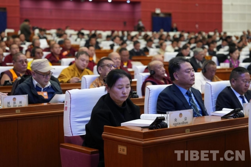 圖為委員認(rèn)真聆聽(tīng)西藏自治區(qū)政協(xié)十二屆三次會(huì)議第二次全體會(huì)議內(nèi)容 攝影:德吉卓瑪
