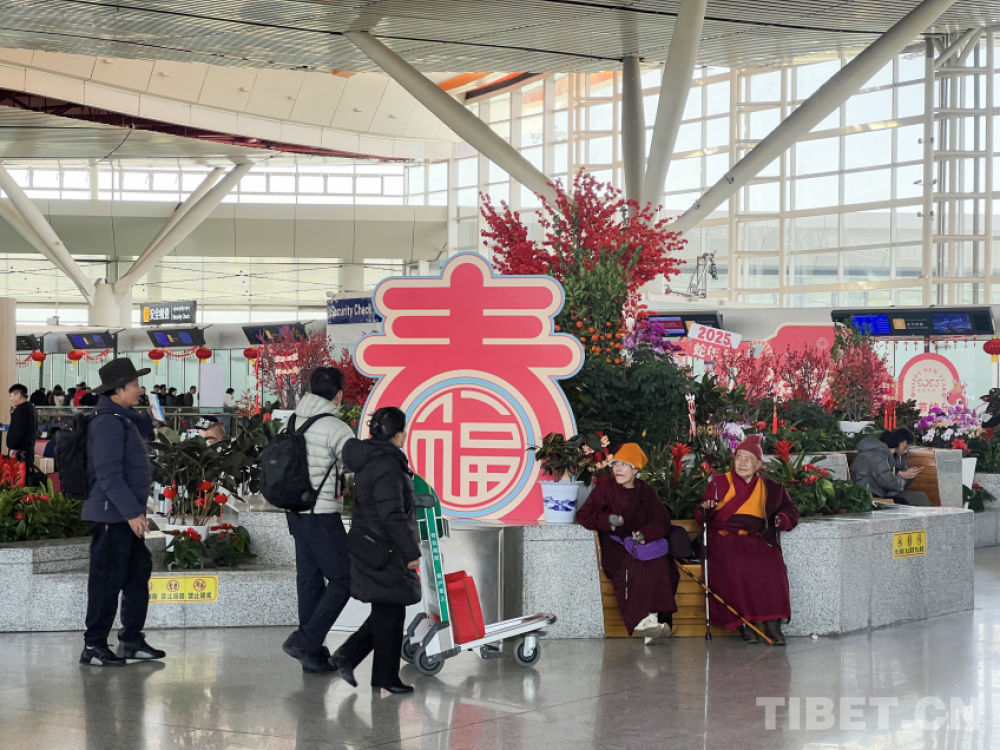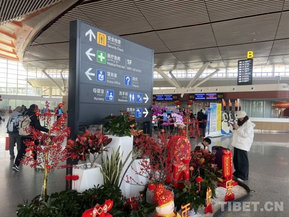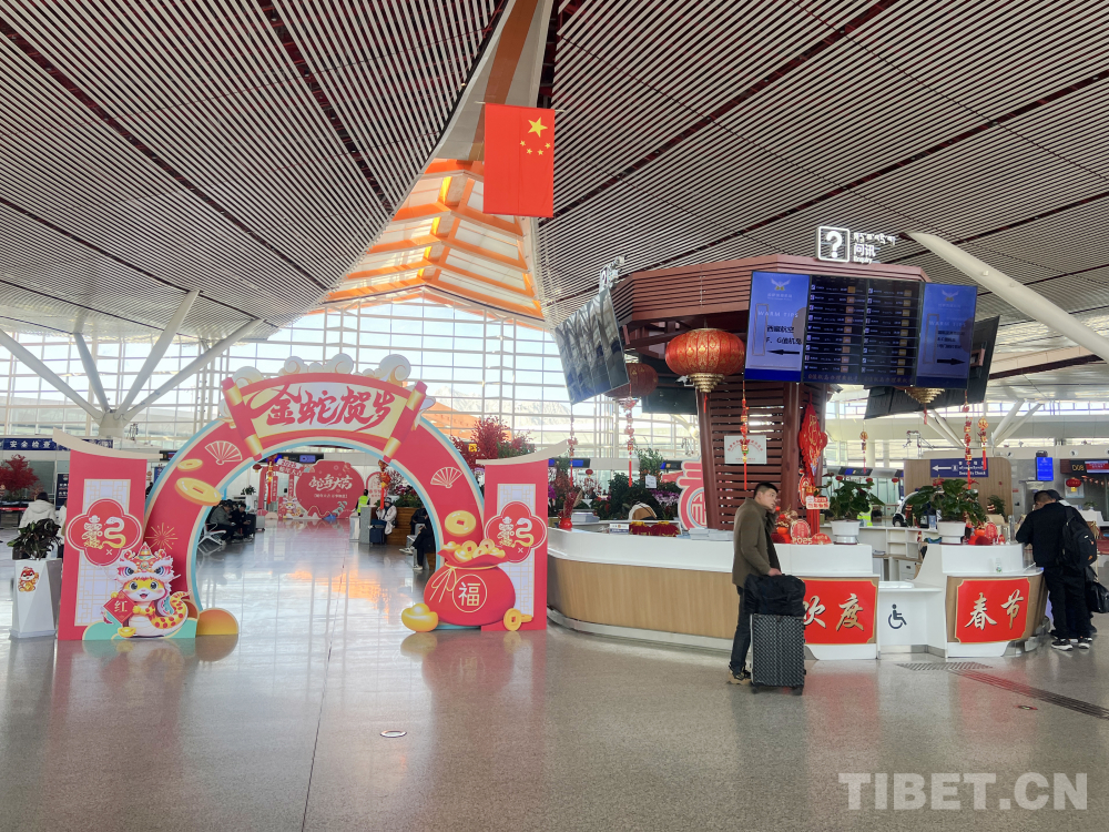 中國西藏網(wǎng)訊 新春的樂章即將奏響,拉薩貢嘎國際機場盛裝以待,用別出心裁的春節(jié)景觀設(shè)計,為過往旅客呈上一場充滿新意的新春盛宴,讓節(jié)日的喜慶在旅途中盡情流淌。(中國西藏網(wǎng) 記者/趙振宇)
