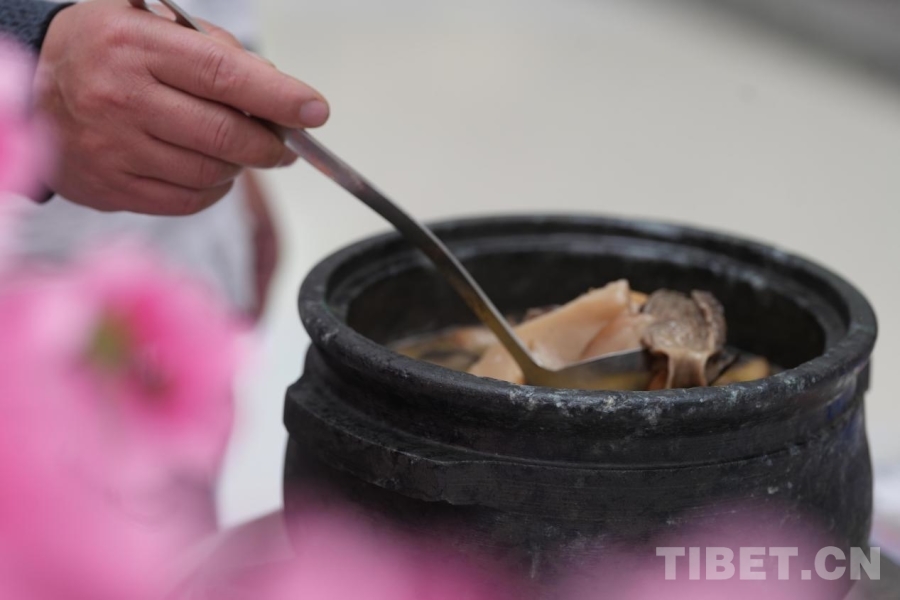 圖為推介會(huì)現(xiàn)場(chǎng)可以品嘗的魯朗石鍋雞 攝影:德吉卓瑪
