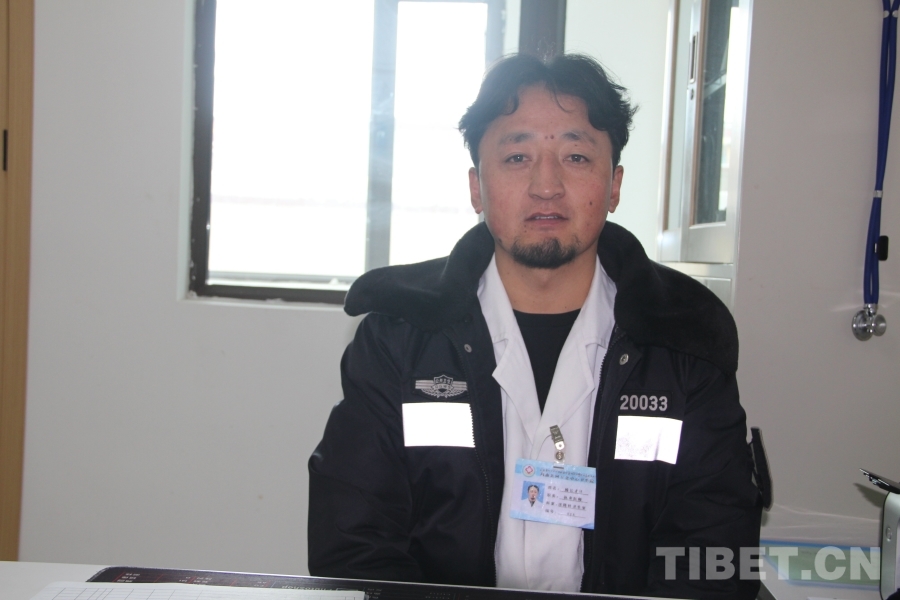 中國西藏網(wǎng)訊 雪白的大褂外披一件藏藍(lán)色冬裝便衣,這便是瑪曲縣阿萬倉中心衛(wèi)生院的執(zhí)業(yè)醫(yī)師楊長(zhǎng)才旦。他的胸牌上寫著“科室:洛隆村衛(wèi)生室”,表明他是鎮(zhèn)上五個(gè)大隊(duì)其中之一的村醫(yī),集中在中心衛(wèi)生院輪班為病患看診。